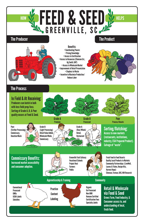 Various branding concepts were provided to the Feed & Seed project that is a Greenville-based agricultural network and processing space.